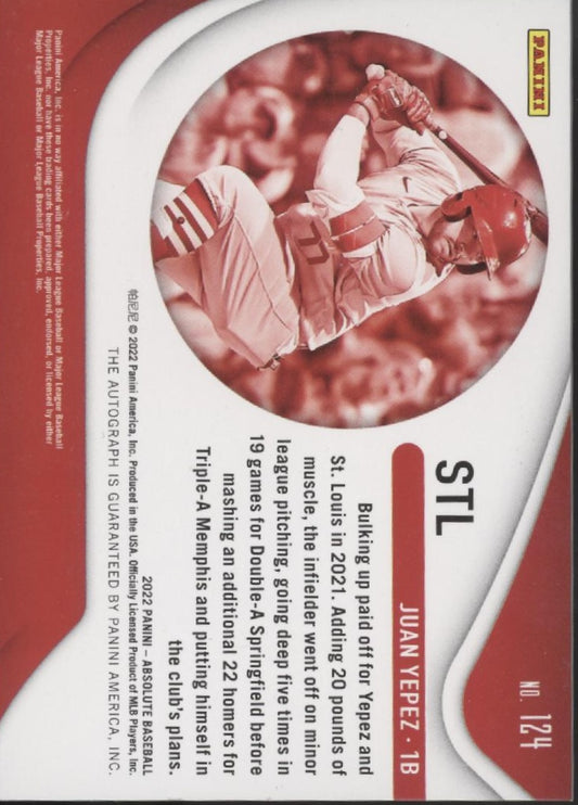 Juan Yepez 2022 Panini Absolute Rookie Signatures Bat Relic Auto 50/50 #124Regular price $10.00Regular priceUnit price per-