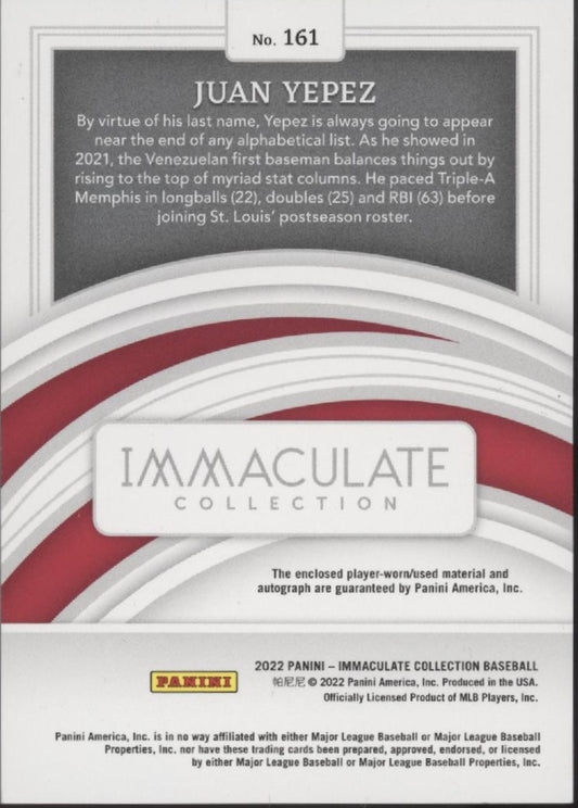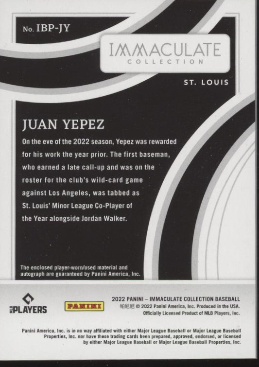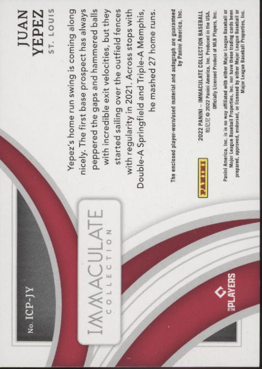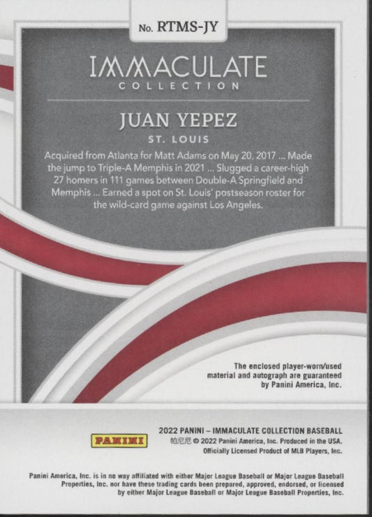 Juan Yepez 2022 Panini Immaculate Collection Swatch RC Auto 13/49 RTMS-JYRegular price $10.00Regular priceUnit price per-