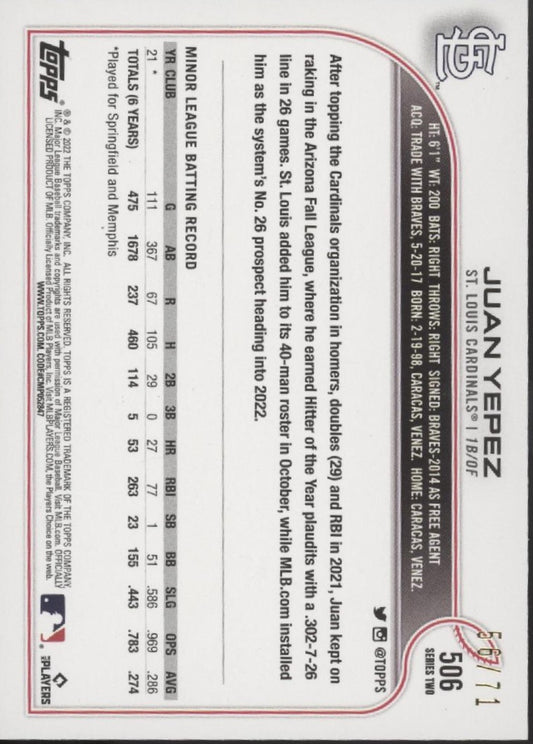 Juan Yepez 2022 Topps Series 2 Black Border RC 56/71 #506Regular price $10.00Regular priceUnit price per-