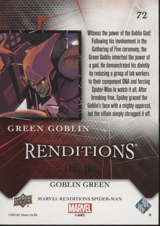 Green Goblin 2024 Upper Deck Marvel Renditions Spider-Man Goblin Green 370/399Regular price $8.00Regular priceUnit price per-