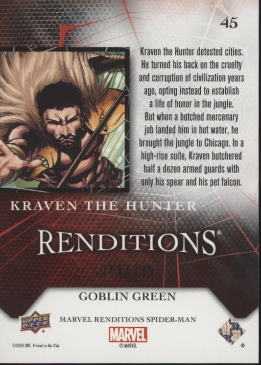 Kraven the Hunter 2024 Upper Deck Marvel Renditions Spider-Man Goblin Green /399Regular price $8.00Regular priceUnit price per-
