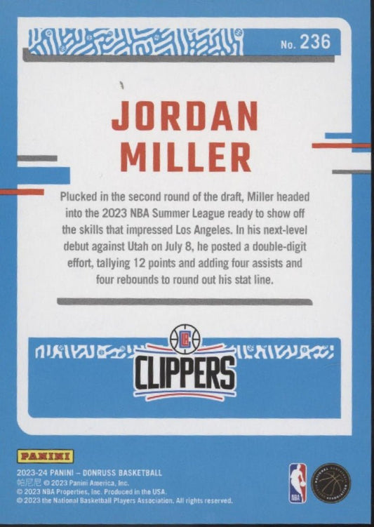 Jordan Miller 2023-24 Panini Donruss Rated Rookie Orange Laser #236