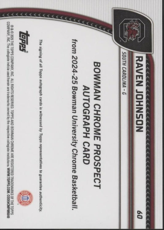 Raven Johnson 2024-25 Bowman Chrome University Blue Shimmer Refractor Auto 14/35