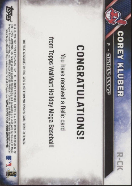 Corey Kluber 2016 Topps Walmart Holiday Mega Swatch #R-CK