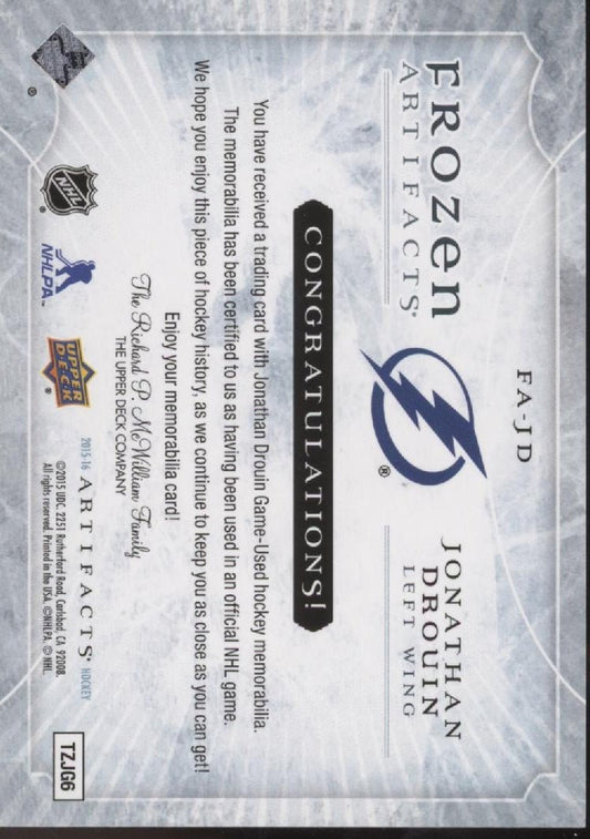 Jonathan Drouin 2015-16 Upper Deck Frozen Artifacts Swatch #FA-JD