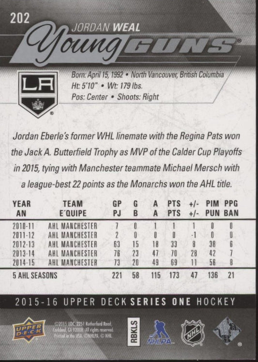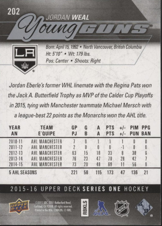 Jordan Weal 2015-16 Upper Deck Series 1 Young Guns RC #202 #1