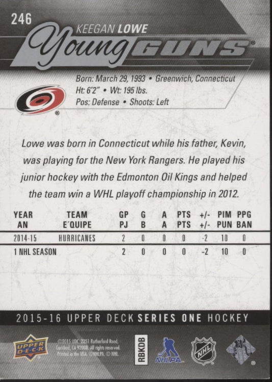 Keegan Lowe 2015-16 Upper Deck Series 1 Young Guns RC #246