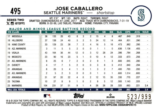 Jose Caballero 2024 Topps Series 2 Blue Foilboard 523/999 #495