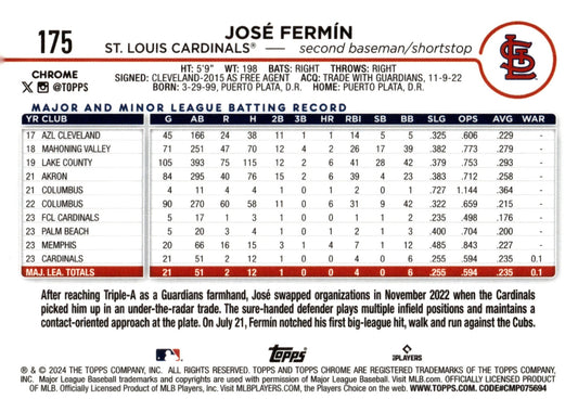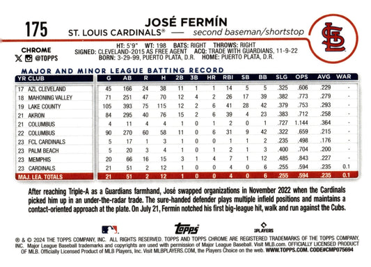 Jose Fermin 2024 Topps Chrome Ray Wave Refractor RC #175