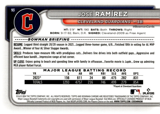 Jose Ramirez 2024 Bowman Chrome Mojo Refractor #93
