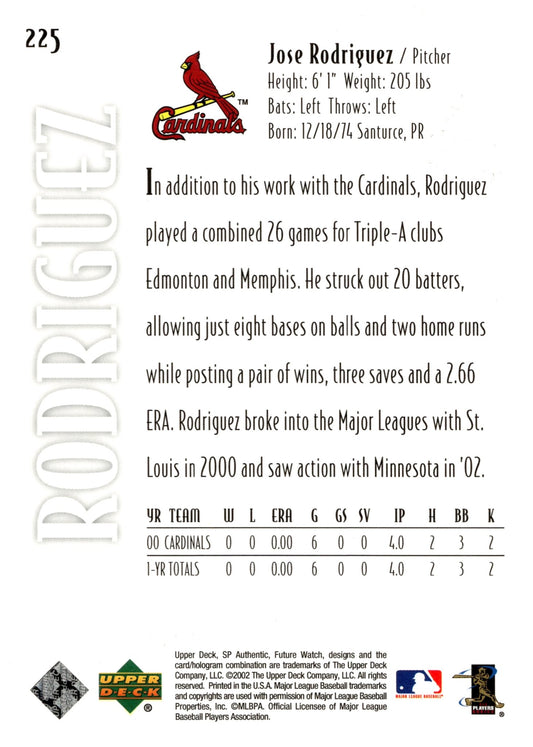 Jose Rodriguez 2002 Upper Deck SP Authentic Future Watch 0390/1999 #225