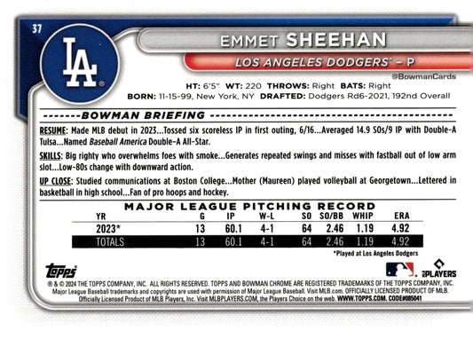 Emmet Sheehan 2024 Bowman Chrome RC #37