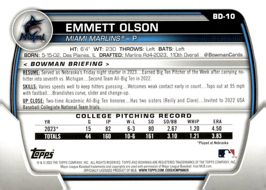 Emmett Olson 2023 Bowman Chrome Sky Blue 031/499 #BD-10