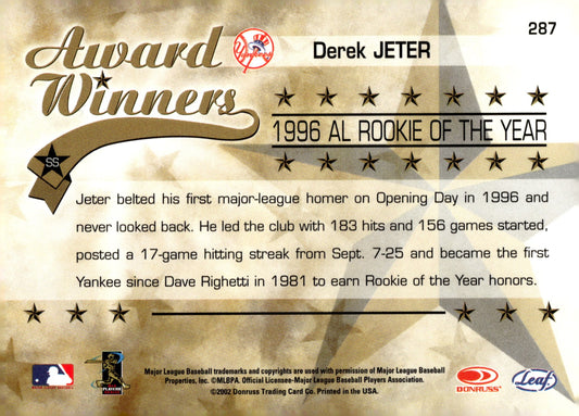 Derek Jeter 2002 Rookies & Stars Award Winners '96 AL Rookie of the Year #287
