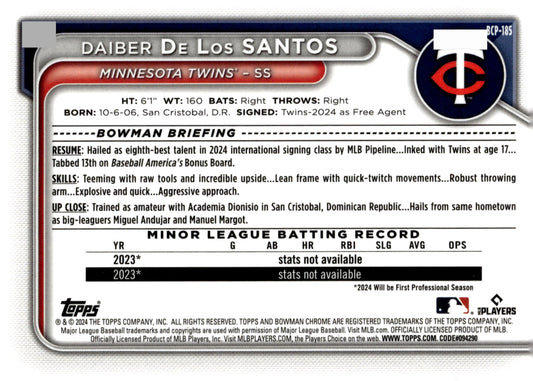 Daiber De Los Santos 2024 Bowman Chrome Mojo Refractor #BCP-185 #6