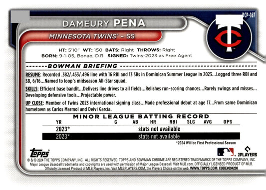 Dameury Pena 2024 Bowman Chrome Mojo Refractor #BCP-167 #1