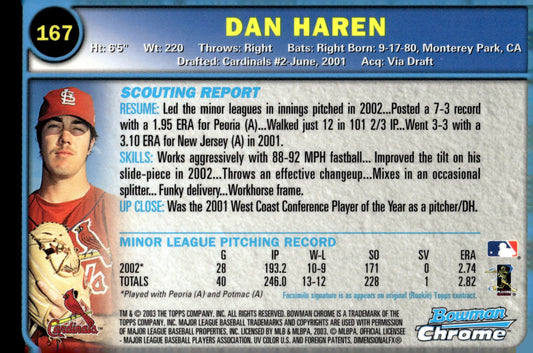 Dan Haren 2003 Bowman Chrome 1st Year #167