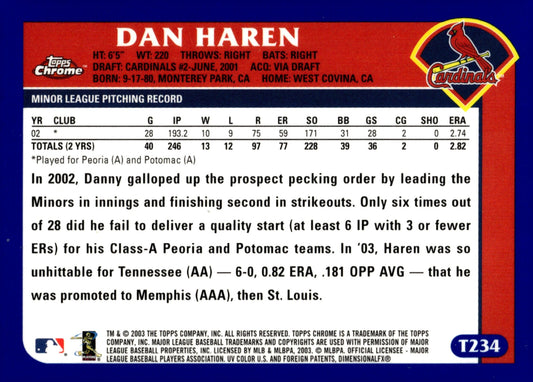 Dan Haren 2003 Topps Chrome 1st Year Blue #T234