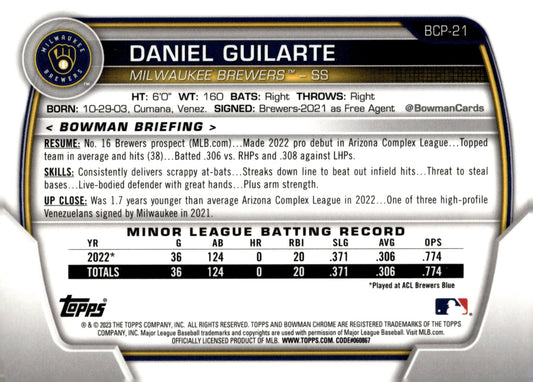 Daniel Guilarte 2023 Bowman Chrome Mojo Refractor #BCP-21 #2