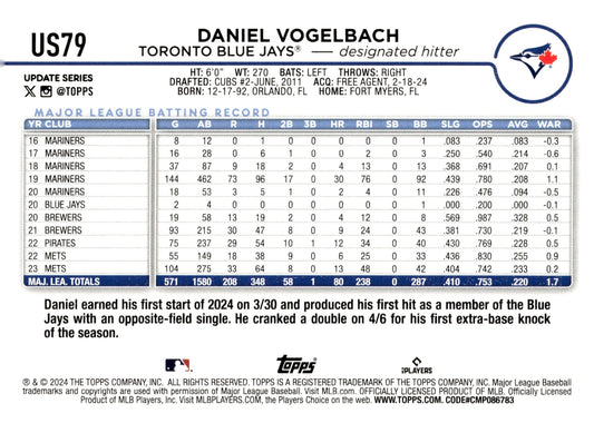 Daniel Vogelbach 2024 Topps Update Series #US79