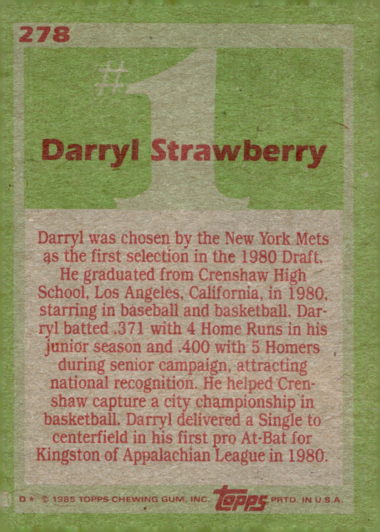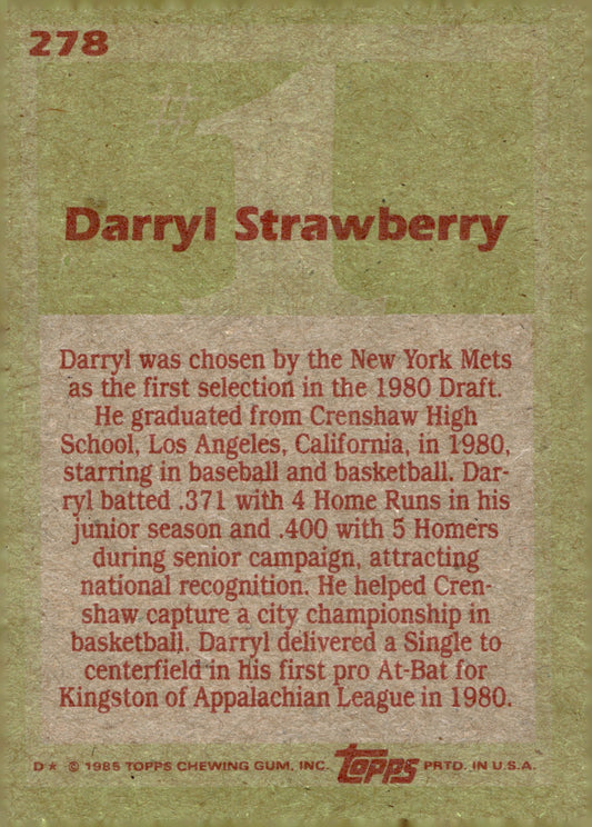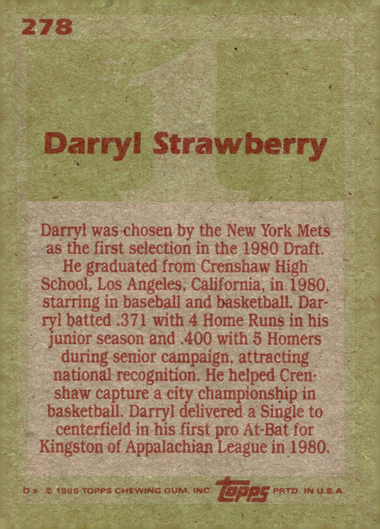 Darryl Strawberry 1985 Topps #1 Draft Pick #278 #1