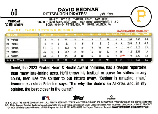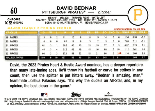 David Bednar 2024 Topps Chrome Sepia Refractor #60