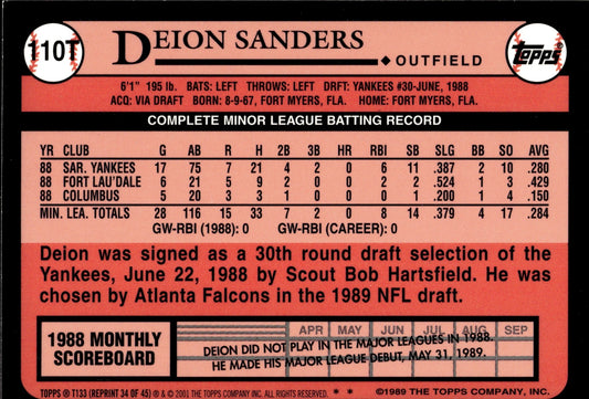 Deion Sanders 1989 Topps Traded RC #110T #3