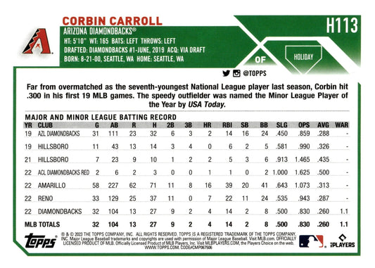Corbin Carroll 2023 Topps Holiday RC #H113