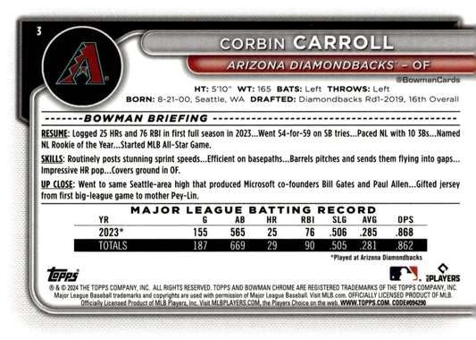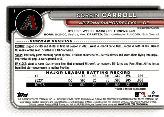 Corbin Carroll 2024 Bowman Chrome Mojo Refractor #3 #3
