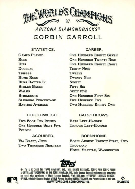 Corbin Carroll 2024 Topps Chrome Allen & Ginter #87