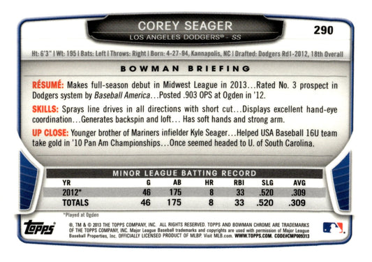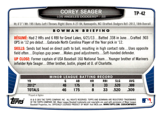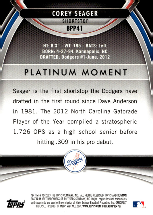 Corey Seager 2013 Bowman Platinum Moment Holo #BPP41 #1