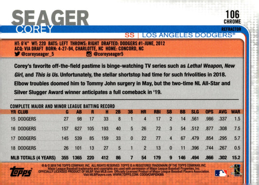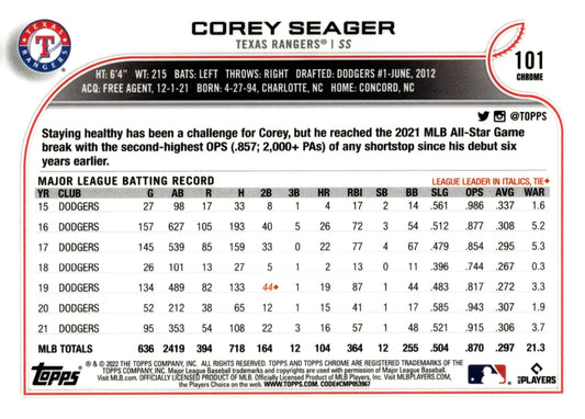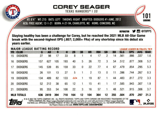 Corey Seager 2022 Topps Chrome Sepia Refractor #101
