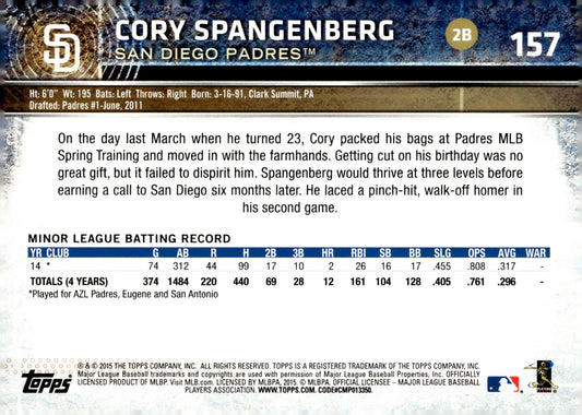 Cory Spangenberg 2015 Topps Opening Day Holo RC #157