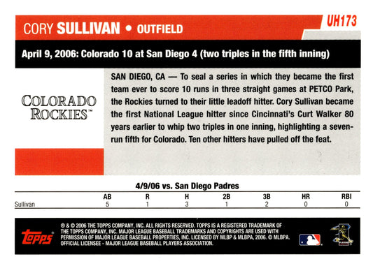 Cory Sullivan 2006 Topps Updates & Highlights #UH173