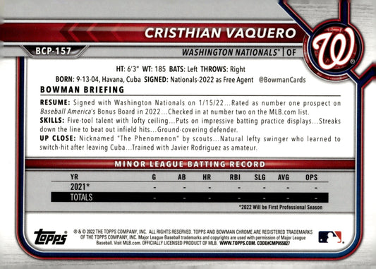 Cristhian Vaquero 2022 Bowman Chrome Prospects #BCP-157