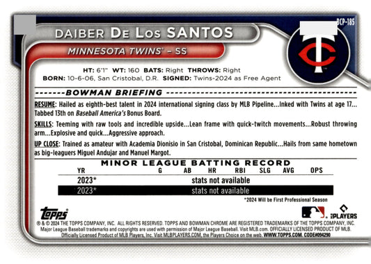 Daiber De Los Santos 2024 Bowman Chrome Mojo Refractor #BCP-185 #3