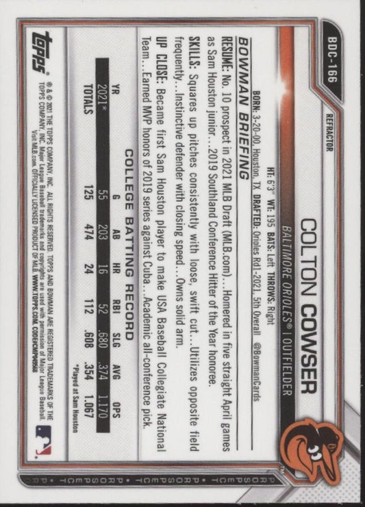 Colton Cowser 2021 Bowman Chrome Prospect Refractor #BDC-166