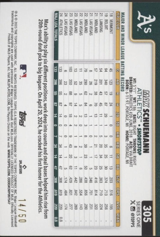 Max Schuemann 2025 Topps Series 1 Gold Foil 14/50 #305