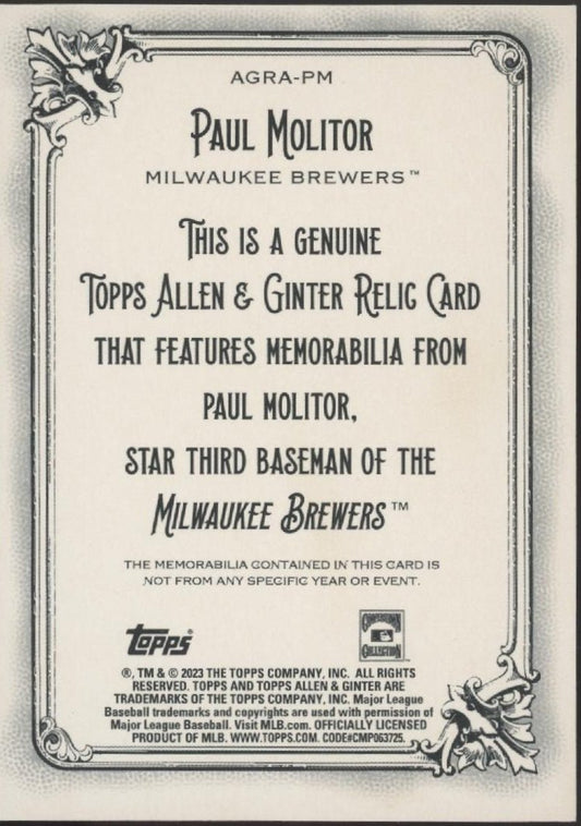 Paul Molitor 2023 Topps Allen & Ginter Bat Relic #AGRA-PM