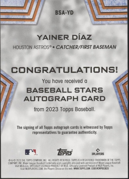 Yainer Diaz 2023 Topps Stars RC Auto #BSA-YD