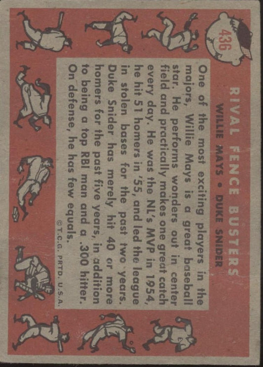 Rival Fence Busters 1958 Topps Willie Mays / Duke Snider #436 PR