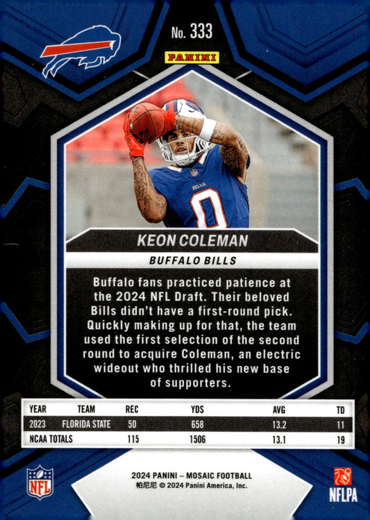 Keon Coleman 2024 Panini Mosaic RC #333 #2