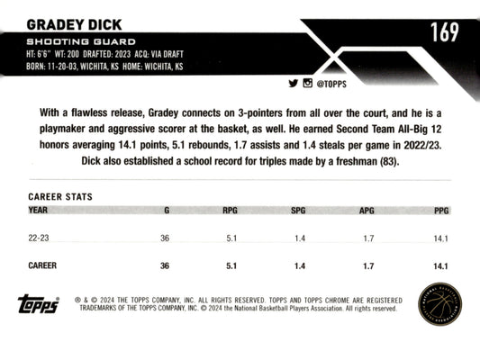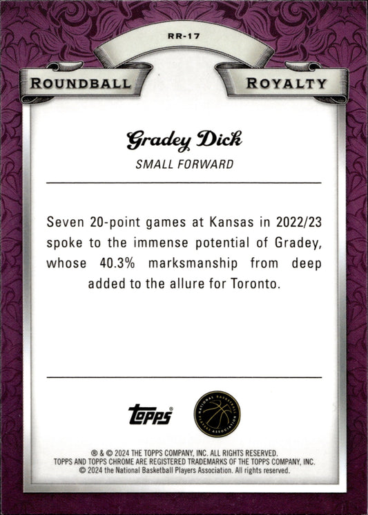 Gradey Dick 2024 Topps Chrome Roundball Royalty Pink Refractor RC #RR-17