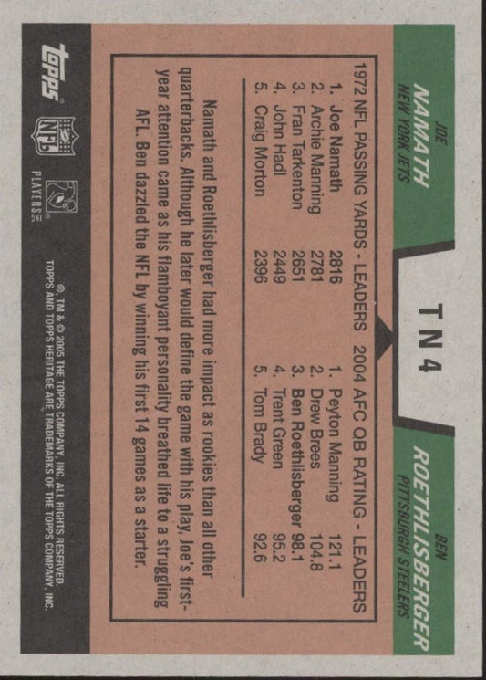 Joe Namath / Ben Roethlisberger 2005 Topps Heritage Then & Now #TN4