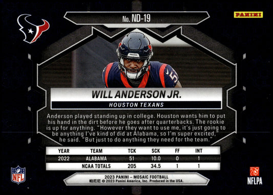Will Anderson Jr. 2023 Panini Mosaic NFL Debut RC #ND-19