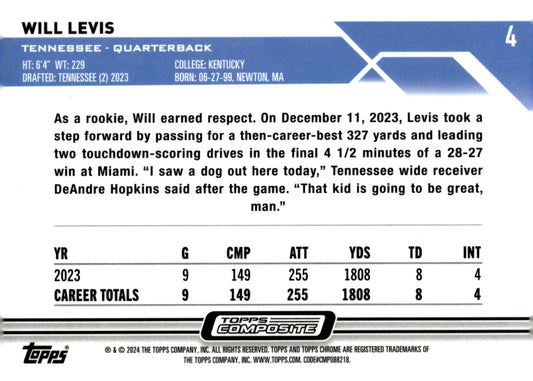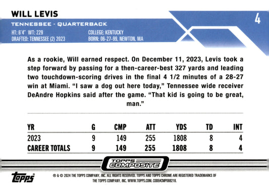 Will Levis 2023 Topps Composite Chrome RC #4 #1