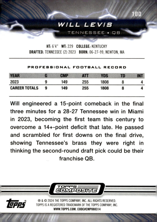Will Levis 2023 Topps Composite Resurgence RC #100