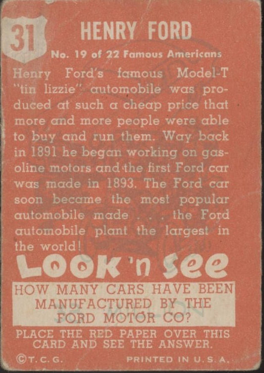 Henry Ford 1952 Topps Look 'n See #31 PR