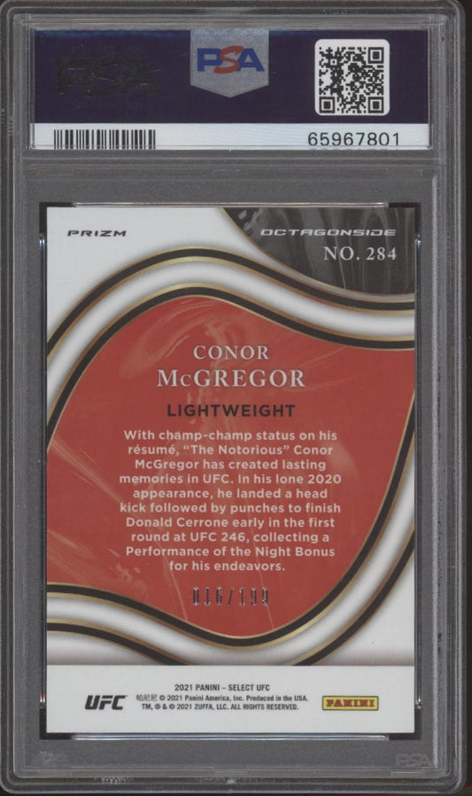 Connor McGregor 2021 Panini Select Red Disco Prizm 016/199 #284 PSA 10