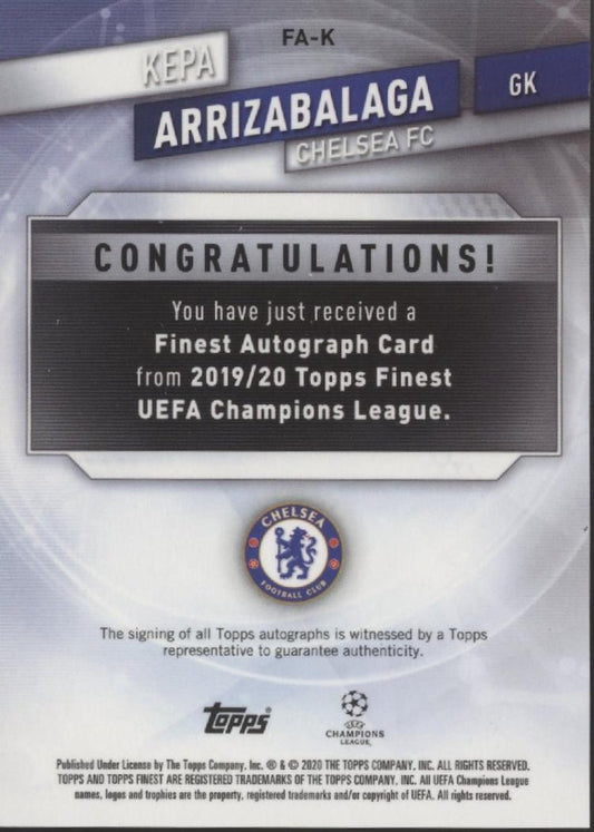 Kepa Arrizabalaga 2019-20 Topps Finest UEFA CL Orange Wave Refractor Auto 15/25
